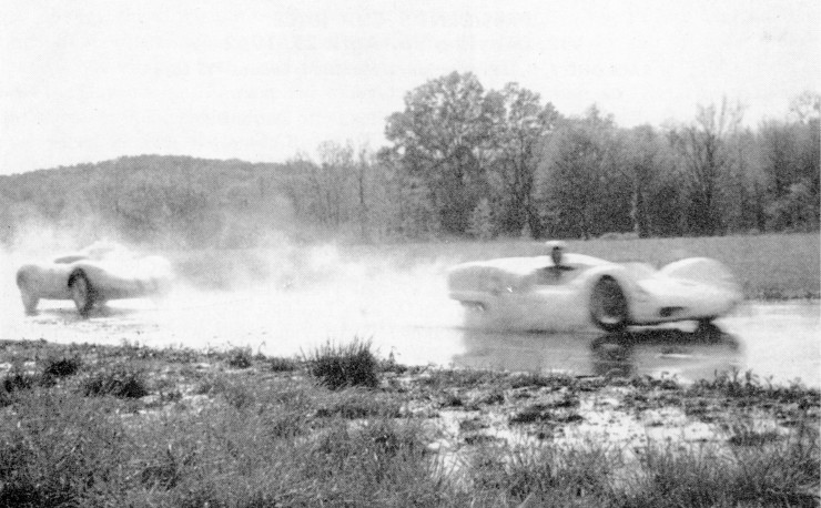 Fifteen minutes into the race the cars seemed to be just creeping down the pit straightthat is, all but Hansgen who had increased his lead by 35 seconds over Holbert and 65 seconds over Penske, who had just repassed Tweedale. By 4:00 PM the race had run one-half hour, and Hansgen had a 1:23 lead on Penske and 1:13 lead over Holbert; evidently he was one person who didn't mind the rain a bit. John Todd's Warwick GT 350, running CM and efficient windshield wipers, moved into fourth place ahead of Tweedale. At 4: 10 PM the water finally got to Hansgen's spark plugs and he was forced to pit, leaving Holbert and Penske running 1-2 only three seconds apart.